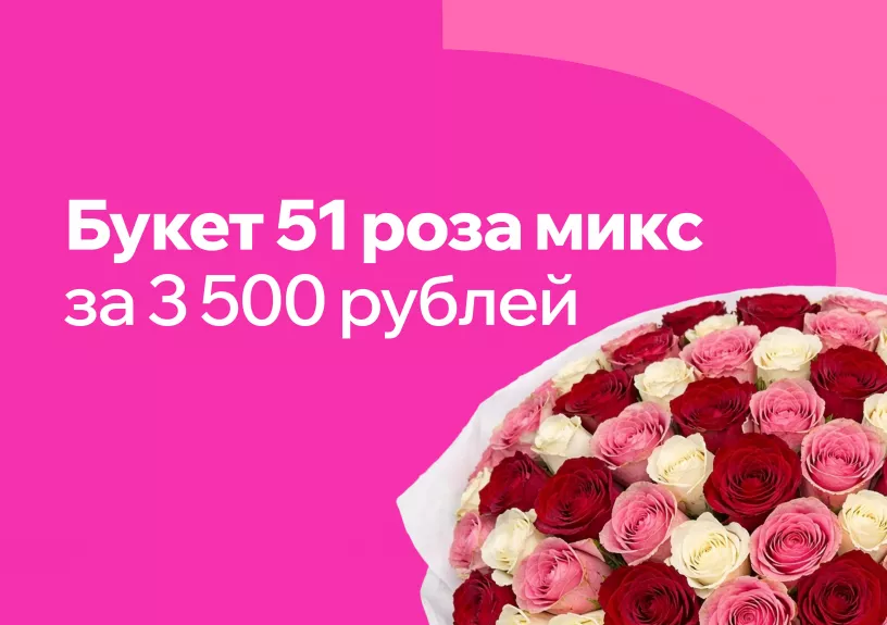 Роза 40 см - 51 шт., Современная упаковка - 1 шт., Лента атласная - 1 шт.Доставка 0₽ от 30-ти минут